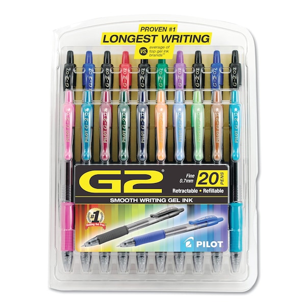G2 Premium Gel Pen Convenience Pack, Retractable, Fine 0.7 mm, Assorted Ink and Barrel Colors, PK20 (Discontinued)