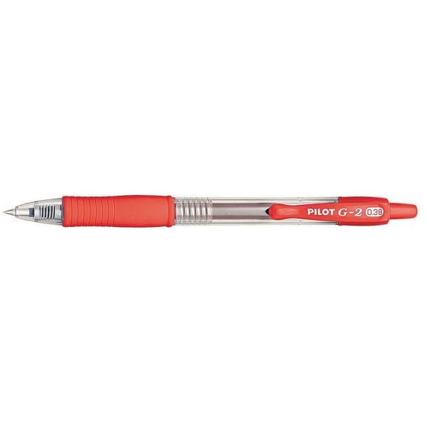 Pen Set, Pen Tip 0.38 mm, Barrel Material Plastic, Barrel Color Translucent, Pen Grip Contoured Cushion, Pen Cap Retractable, Includes Pen Cushion Cushion Included, Pen Ink Color Red, Series G2(R) Premium, Features Permanent Ink, Package Quantity 12