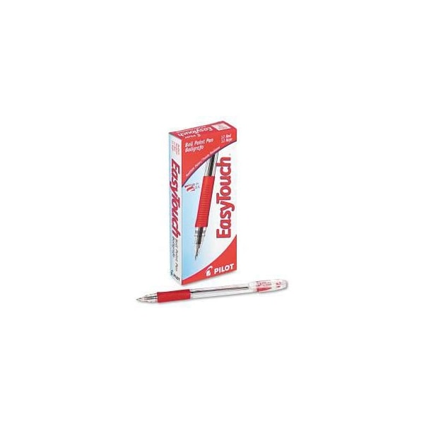 pilot easytouch stick ballpoint pen, clear barrel, medium, 1.0 mm, red ink, refillable ballpoint pen features a bold, balanced barrel, reducing writer's fatigue. It's refillable, so the pen can be used over and over again. Tight-fitting cap to protect ink for a longer life. Fine point ensures precise writing and clean results. Pen type: ballpoint; pen style: stick; ink color(s): red. this product arrives to most customers in 2-3 business days.