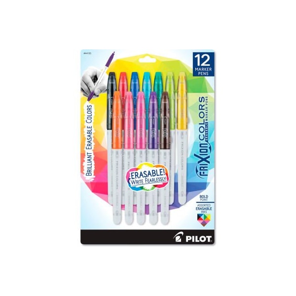 Pilot FriXion Colors Erasable Stick Marker Pen, 2.5mm, Assorted Ink/Barrel, 12/Set