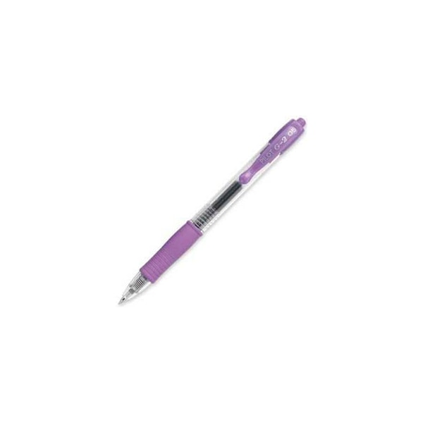 Pilot g2 gel retractable rollerball pen, extra fine, 0.5mm, purple ink, dozen g2 retractable pen contains water-resistant, smear-proof gel ink that offers exceedingly smooth writing. Retractable design means no cap to lose. Contoured, latex-free rubber grip provides writing comfort. Refillable. Cushioned grip/water resistant/smear proof ink. this product arrives to most customers in 2-3 business days.