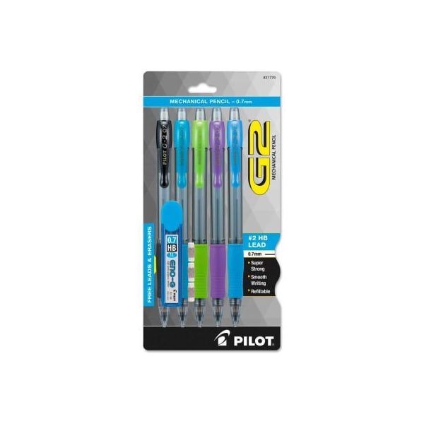 Pilot G2 Mechanical Pencil, 0.7 mm, HB #2.5, Black Lead, Assorted Barrel Colors, 5/Pack