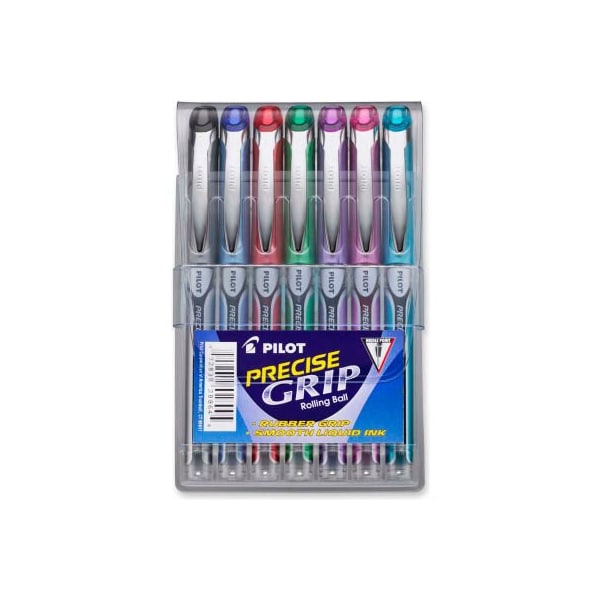 Pilot Precise Grip Rolling Ball Pen, Extra Fine, 0.5mm, Assorted Ink, 7/Pack