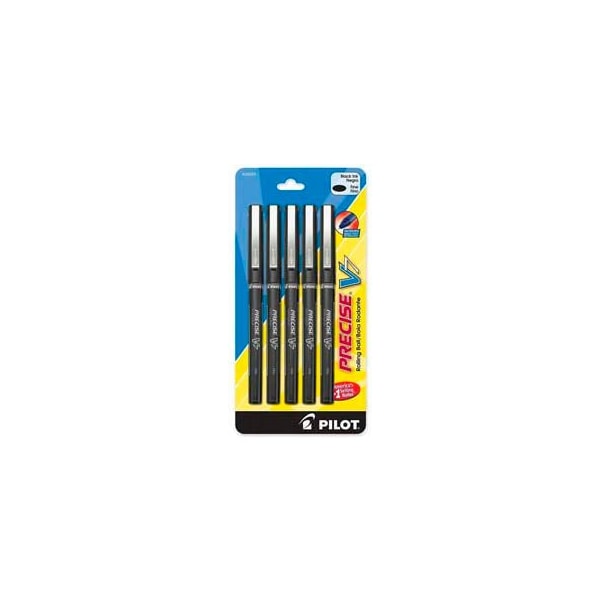 Pilot precise v7 rollerball pen, non-refillable, fine, 0.7mm, black ink, 5/pack precise v pens write through layers of copies. Concentric ring ink feeder system delivers an even, continuous flow of ink, ensuring the same density of ink from start to finish. Pen offers a large, visible ink supply for longer writing capacity. Visible ink supply.