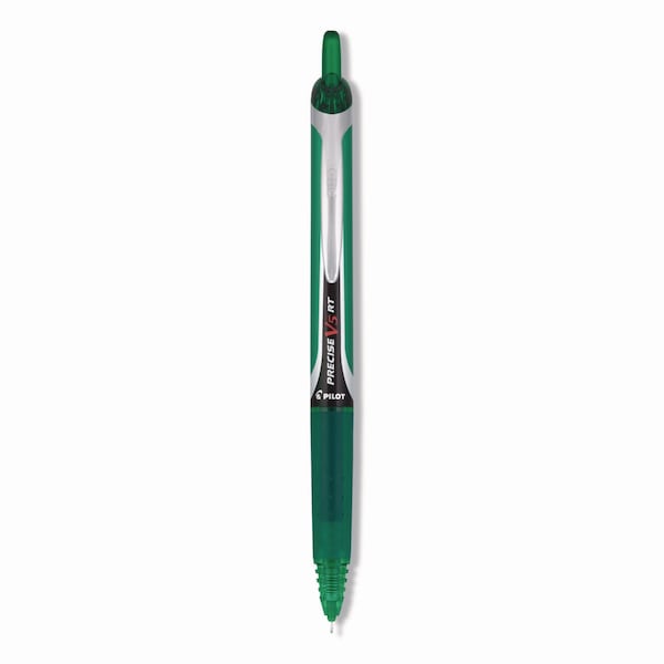 Precise V5RT Rollerball Pen, Retractable, Extra-Fine 0.5 mm, Green Ink, Green/Silver Barrel