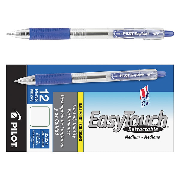 Ballpoint Pen, Pen Tip 1 mm, Barrel Material Plastic, Barrel Color Clear, Pen Grip Textured Cushion, Pen Cap Retractable, Includes Pen Cushion Cushion Included, Pen Ink Color Blue, Series EasyTouch(R), Package Quantity 12