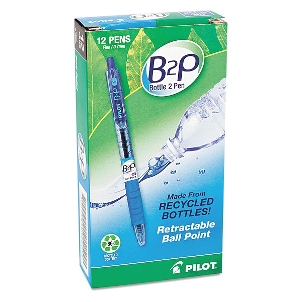 Gel Pen, Pen Tip 0.7 mm, Barrel Material Recycled Plastic, Barrel Color Blue, Pen Cap Retractable, Includes Pen Cushion Cushion Included, Pen Ink Color Blue, Series B2P, Features Refillable, Package Quantity 12