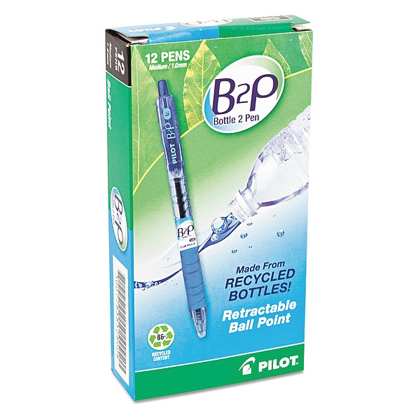 Gel Pen, Pen Tip 1 mm, Barrel Material Recycled Plastic, Barrel Color Blue, Pen Grip Cushioned, Pen Cap Retractable, Includes Pen Cushion Cushion Included, Pen Ink Color Blue, Series B2P Bottle-2-Pen Recycled, Features Refillable, Package Quantity 12
