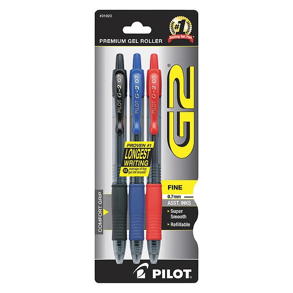 Pen Set, Pen Tip 0.7 mm, Barrel Material Plastic, Barrel Color Assorted, Pen Grip Contoured Cushion, Pen Cap Retractable, Includes Pen Cushion Cushion Included, Pen Ink Color Assorted, Series G2(R) Premium, Features Permanent Ink, Package Quantity 3