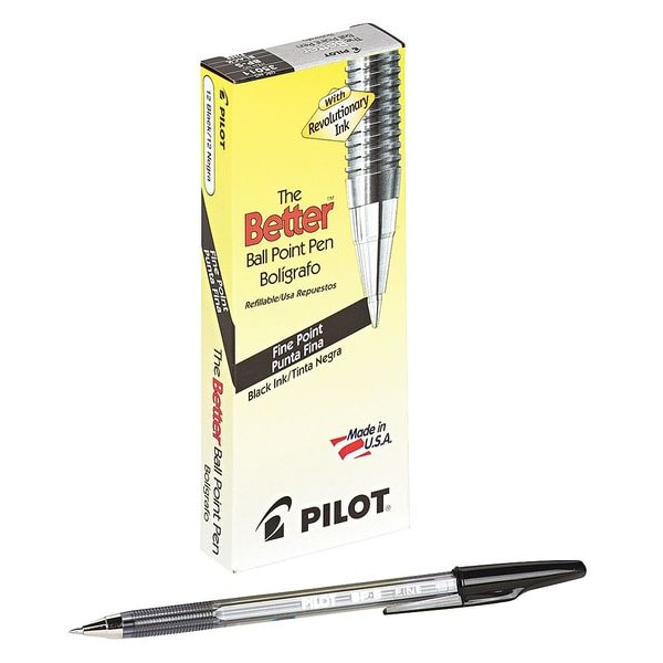Ballpoint Pen, Pen Tip 0.7 mm, Barrel Material Plastic, Barrel Color Clear, Pen Grip Textured Cushion, Pen Cap Capped, Includes Pen Cushion Cushion Included, Pen Ink Color Black, Series Better(TM), Package Quantity 12