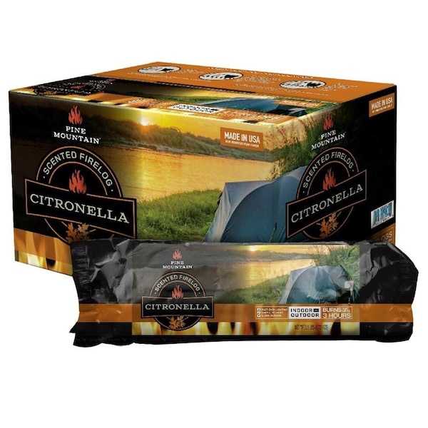 Pine Mountain citronella firelogs light quickly and easily. They provide 3 hours of bright warmth and big flames with the fresh smell of citronella, perfect for spring and summer. A great replacement for firewood since they are easy to use and lightfast. This citronella firelog will help create lasting memories with friends and family all season long. This product is not food safe.