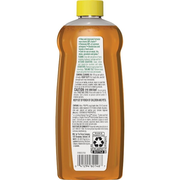 Multi-surface all-purpose cleaner is the only cleaner you need to fight tough dirt grease and grime. This 2X concentrated formula lasts 2X longer than the previous Pine-Sol Pine formula. Deodorizes cuts through grease removes grime tackles dirt and removes 99% of allergens. Clean countertops sinks garbage disposals floors sealed wood surfaces furniture walls doorknobs showers tubs toilets exterior surfaces and more.