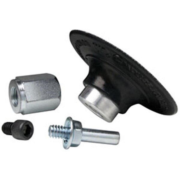Features -2 in. diameter 0.25 in. diameter shaft -Includes Roloc Adapter 7/16 in. - 24 thread -Hard rubber backup pad -Firm support for Scotch-Brite Roloc Surface Conditioning Discs