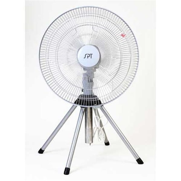 Heavy-duty industrial-grade 18-inch fan with 3 speed settings. 4-legged pedestal adjusts from 2-1/2 to 3 feet in height. Measures approximately 16-3/4 by 17 by 36"es; 1-year limited warranty.