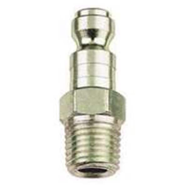 Recognized by the extremely short pilot. Has the widest metal section between the ball groove and the pilot. The sealing surface on the end of the nipple is wider than other interchanges resulting in better sealing and longer seal life. Intended for compressed air lines only. 300 PSI maximum rated working pressure. Features -Plug - Male. -Size - .25. -True flat design. -Dimension - 5.59 x 4.35 x 3.8. -Item Weight - .12 lbs.