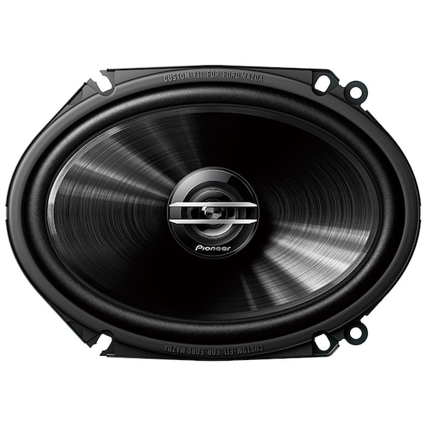 The 6in. x 8in., G Series, 2 Way Car Speaker features an injection molded polypropylene cone, rubber coated cloth surround, 1 3-16in. balanced dome tweeter, rubber magnet boot cover, and Ferrite magnet motor structure. Power handling 250W MAX-40W RMS. Top-mount Depth: 2-1/2" Cutout Dimensions: 7-1/2" x 5-1/4" 4 ohms impedance Frequency Response: 72 - 14,000 Hz Sensitivity: 92dB