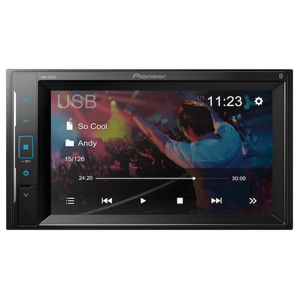 The Pioneer DMH-240EX Double-DIN Digital Receiver adds easier source navigation and sound adjustment. It also gives you reliable voice control of your smartphone, a video display for a backup camera, built-in Bluetooth for hands-free calling and wireless audio streaming, and more. This receiver also allows you to pair up to 2 phones for quick and easy access which is a handy feature for the family. It even gives you control over compatible Android devices, displaying metadata such as track, artist, and album name when it is available. Plug your music player into the aux input, or connect your iPod, iPhone, or other compatible device to the USB input. While the car is parked and the parking brake is engaged, you can enjoy video playback from an outboard video player or a USB drive. The DMH-240EX brings your music to life via a 13-band equalizer for customized adjustments to acoustic settings. An assignable input can also connect a rearview camera for ease of backing in and out of parking spots, as well as viewing what is behind you.