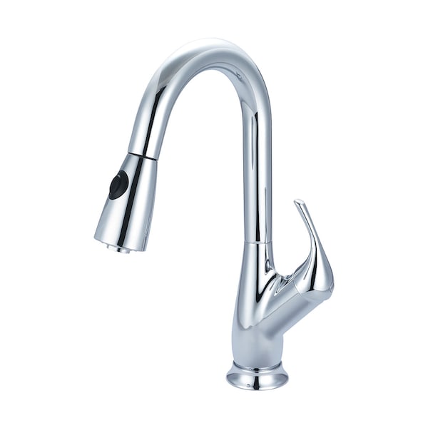 Single Handle Pull-Down Kitchen Faucet, Compression Hose, Chrome, Number of Holes: 1 or 3