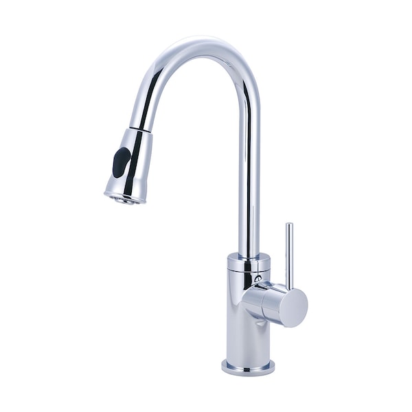 Single Handle Pull-Down Kitchen Faucet, Compression Hose, Chrome, Overall Height: 17.63"