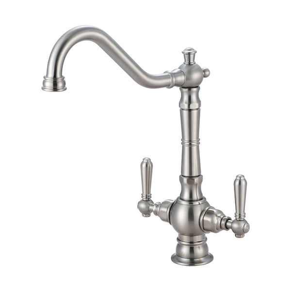 Two Handle Kitchen Faucet, Compression Hose, Single Hole, Brushed Nckl, Flow Rate (GPM): 1.5