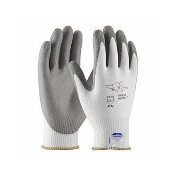 PIP 19-D62S 19-D622 GENERAL PURPOSE GLOVES, SEAMLESS STYLE, POLYURETHANE PALM, DYNEEMA/NYLON/LYCRA/POLYURETHANE, GRAY/WHITE, KNIT WRIST CUFF, RESISTS: ABRASION, CHEMICAL, CUT, PUNCTURE, TEAR, ULTRAVIOLET LIGHT AND WATER, DYNEEMA BLEND LINING