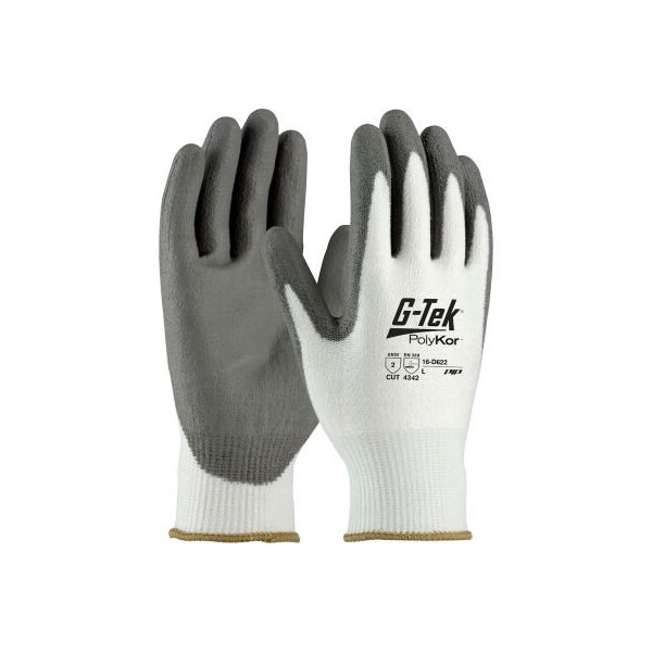 G-Tek PolyKor Seamless Knit PolyKor Glove Polyurethane Coated Flat Grip, Medium, White, 12pk