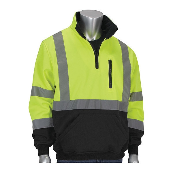 Hi-Visibility Sweats,Lime Yl,1/4 Zip,3XL, Size 3XL