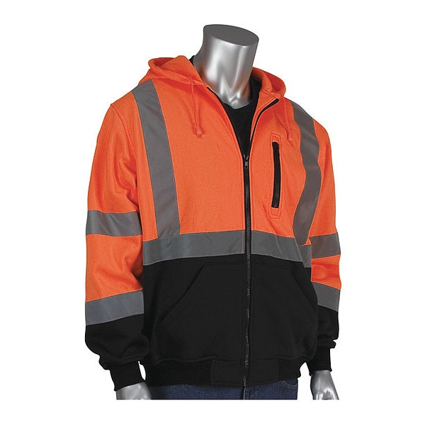 High Visibility Front Zip Sweatshirt, R3, R3, Fleece, Orange, M