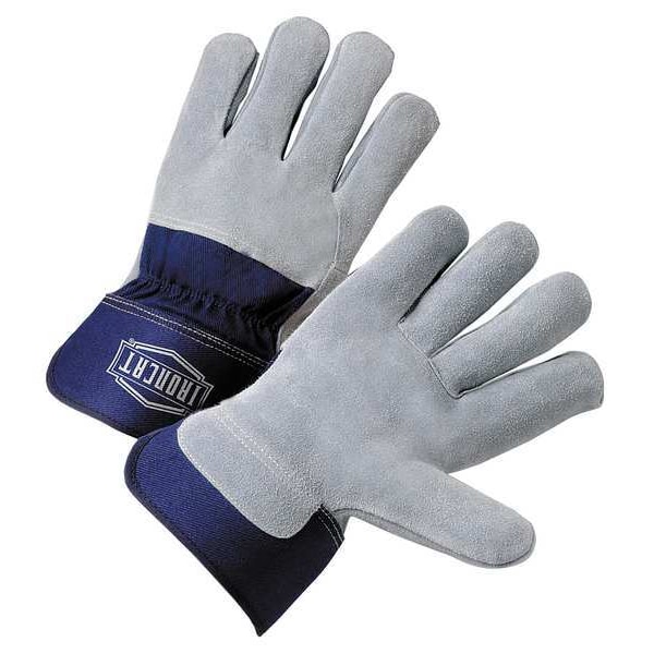 Leather Palm Gloves, Cowhide, Safety Cuff, Wing Thumb, Full Finger, Gray, M, 12 PK