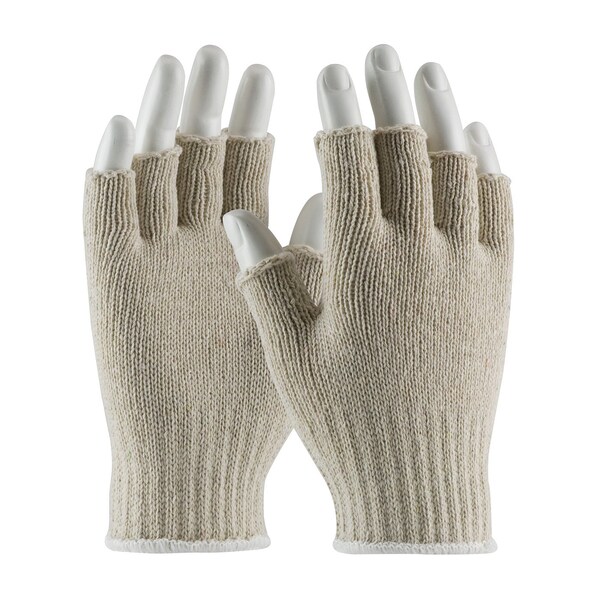 Medium Weight Seamless Knit Cotton/Polyester Glove - Natural with Half-Finger, 12PK (Discontinued)
