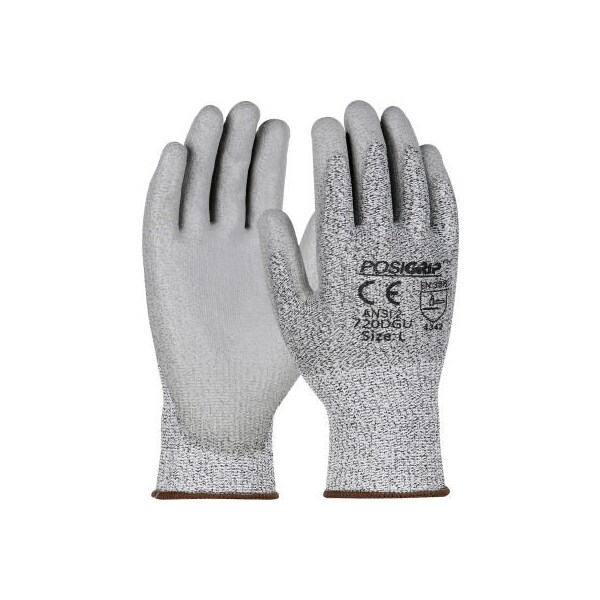 PosiGrip Seamless Knit HPPE Blended Glove Polyurethane Coated Flat Grip, Small, Salt & Pepper, 12pk