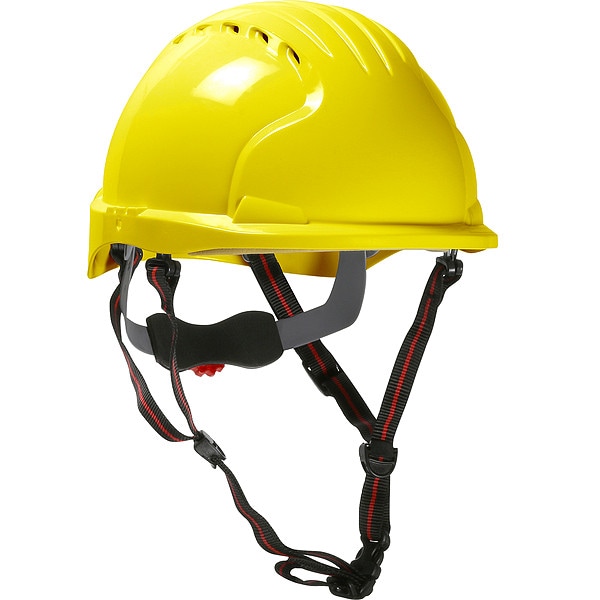 Safety Helmet, ANSI Classification Type 1, Class C, Head Protection Style Front Brim, Head Protection Suspension Type Ratchet (6-Point), Head Protection Color Yellow, Head Protection Graphics No Graphics, Head Protection Material Polyethylene, Head Protection Venting Yes, Reverse Donning Yes, Standards TAA Compliant, Series JSP