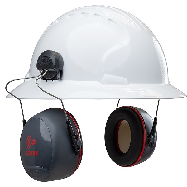 Passive Earmuff, Earmuff Style Hard Hat-Mounted, Noise Reduction Rating 28 dB, Dielectric Yes, Cushion Material Foam, Compatible Manufacturer Model Number 280-EV6161, 280-EV6161M, 280-EV6161MCR2, 280-EV6161V, 280-HP641, 280-HP641R, 280-HP641RV, 280-HP642R, For Use With Hard Hats with Universal Slots, Includes Full Brim, Cup Color Gray/Red, Series Sonis 3, Earmuff Type Foldable, Standards TAA Compliant, Features Twin-Point-Mounted Ear Cups, Electrically Insulated Yes, 1 Pair