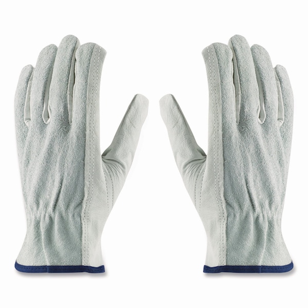 Top-Grain Leather Drivers Gloves with Shoulder-Split Cowhide Leather Back, Large, Gray