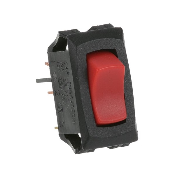 [ Lighted Rocker Switch ] [ Fits Hole 9/16" X 1-1/8" ] ;[ On/Off ] [ Spst ] [ Terminals 3Ea (1/4" Tabs) ] ;[ Amp/Volt 16A/125V, 10A/250V ] ;[ Color Red Light/Red Rocker/Black Body];Pitco Fryer