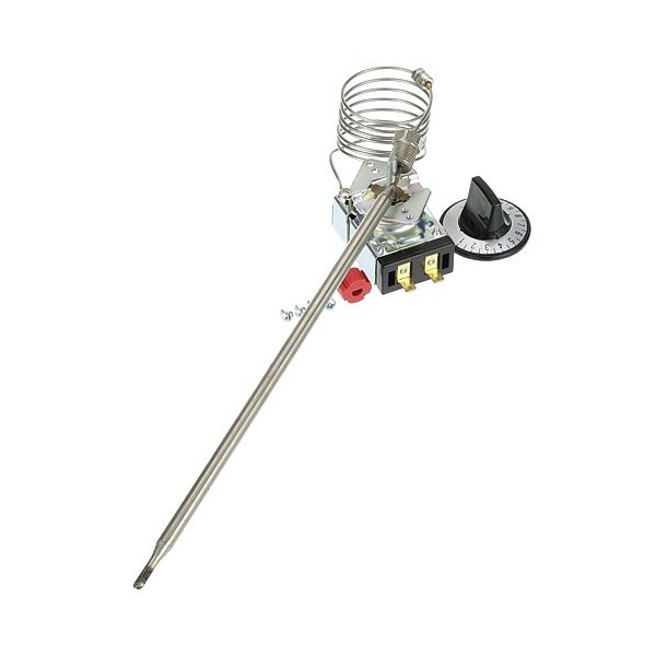 Thermostat, [ Type - Kx ] [ Temp 250-375F ];[ Bulb 5/16" X 9-15/16" ] [ Cap 48" ] ;[ 1/4" Mpt Stuff Box ] [ Mount 1 ]; [ Dial A371, K-236, # 22-1027 Black T'Stat Knob W/ White;Printed Numbers [ 2-1/4" Dia ] [Off-400-200] [Mount .187"];[Flat Down ];Pitco Fryer Elec Series: 24, 34, E12, E14, E18.