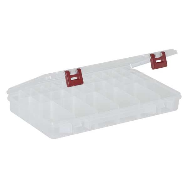 Compartment Box, Closure Type Latch, Color Clear, Compartment WxD Not Applicable, Electrostatic Discharge Not Electrostatic Discharge Conductive, Material Plastic, Maximum Number of Compartments 28, Number of Adjustable Dividers 25, Overall Height 1 7/8 in, Overall Length 14 in, Overall Width 9 1/4 in, Volume Capacity Not Applicable, Number of Fixed Dividers Not Applicable, Overall Diameter Not Applicable, Series 3700, Shape Rectangular