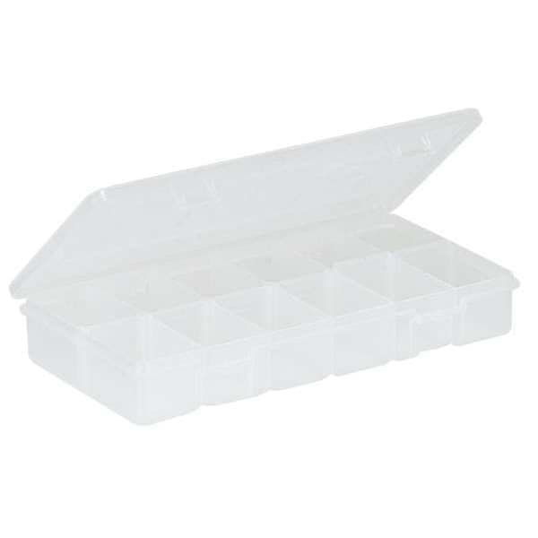 Adjustable Compartment Box with 6 to 12 compartments, Plastic, 1 3/8 in H x 4-1/4 in W