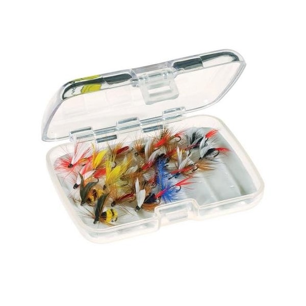 Guide Series Fly Fishing Case Small - Clear. Features: High-quality, closed-ripple foam. Secure latch. Rounded edges won't catch on pockets. Large enough to hold both saltwater and bass flies. Transparent for quick and easy identification of contents. Color: Clear. Dimensions: L=4.49in. x W=3.35in. x H=1in..