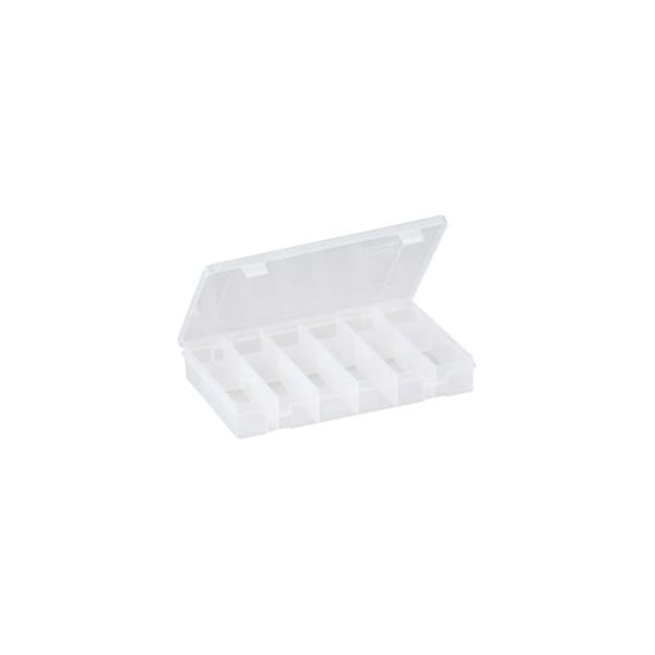 Ideal storage solution for organizing small parts and components. Manufactured from Polypropylene, this StowAway features 12 fixed compartments and a tension latch.