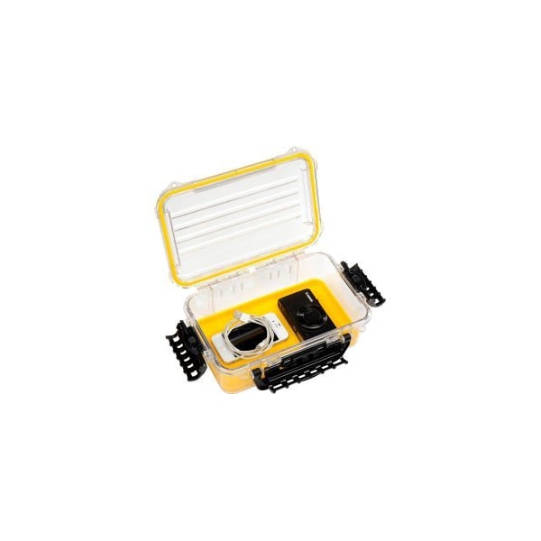 PLANO 3600 GUIDE SERIES AIRTIGHT & WATERPROOF STORAGE CASE, 11"L X 7-1/4"W X 4"H, YELLOW THE 3600 SIZE WATERPROOF POLYCARBONATE STORAGE BOX IS THE PERFECT STORAGE SOLUTION FOR KEEPING CONTENTS DRY. MANUFACTURED FROM CRYSTAL CLEAR POLYCARBONATE, THIS STORAGE BOX FEATURES A CONTINUOUS O-RING SEAL THAT KEEPS WATER OUT*, A RUBBER LINING FOR PROTECTING VALUABLES, THREE TIGHT CLOSING CAM-ACTION LATCHES AND A SWIVEL HANDLE.*SUBMERSIBLE TO 1 METER UP TO 30 MINUTES.