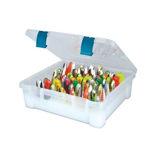 ProLatch Spoon Box XXL - Clear. Features: Holds up to 66 spoons up to 5 inches long. Great for saltwater or freshwater spoons. Interior foam padding tightly secures spoons for quick access. Transparent for quick and easy identification of spoons. Secure ProLatch closure. Color: Clear. Dimensions: L=17.5in. x W=16in. x H=5in..