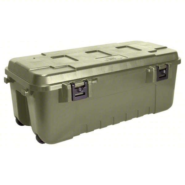 Storage Trunk, Color Green, Handle Style Molded, Hinge Material Not Applicable, Inside Height 12 1/2 in, Inside Length 29 7/8 in, Inside Width 13 1/4 in, Material Plastic, Overall Height 14 in, Overall Width 18 in, Overall Length 37 1/2 in, Stackable Stacking Capable, Stacking Capacity Not Applicable, Volume Capacity 27 gal, Weight Capacity Not Applicable, Number of Handles 2, Mobility Mobile, Closure Type Latches, Shape Rectangular