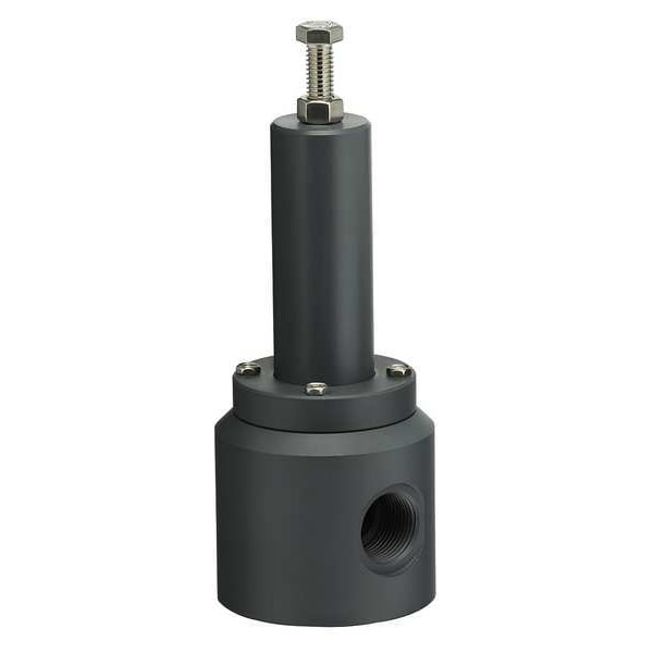 Adjustable Back Pressure Relief Valve, Body Material PVC, Inlet Type FNPT, Outlet Type FNPT, Inlet Size 1 in, Outlet Size 1 in, Factory Set Pressure 150 psi, Pressure Range 5 to 100 psi, Not Applicable BtuH, Overall Height 9 13/16 in, Overall Length 3 in, Seat Material FKM, Spring Material Plated Steel, Temp. Range 32 Degrees to 140 Degrees F, Test Lever Test Lever Not Included, Standards ISO 9001:2015