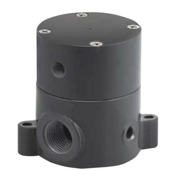 Pneumatically Actuated Diaphragm Valve, Coefficient of Volume (Cv) 17, Nominal Valve Size 1 1/2 in, Actuator Air Port Connection 1/8 in NPT, Connection Type - Side 1 NPT, Connection Type - Side 2 NPT, For Media Corrosive Chemicals, Water, Diaphragm Material PTFE, Operating Temperature - Maximum 180 Degrees F, Maximum Pressure - Operating 100 psi, Valve Deactivated State Normally Closed (NC), Body Material Polypropylene, Diaphragm Valve Type 3-Way, Seal Material PTFE, Overall Length 5 in
