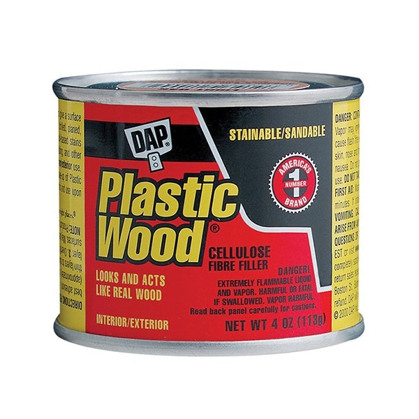 A high-performance, solvent-based wood filler that hardens to give a repair that is 3X stronger than the wood itself. This professional-grade, heavy duty wood filler contains real wood fibers so it looks and acts like real wood. It can be sanded, cut, drilled, screwed, planed, stained, varnished, painted, or lacquered. It provides strong nail and screw anchoring without splitting. DAP Plastic Wood Professional Wood Filler dries fast and hard, and is shrink and crack resistant. For use on furniture, doors, paneling, molding, plywood, and other wood surfaces. Available in several popular wood shades, this high-performance wood filler can also be stained to match any wood shade. For interior / exterior use.