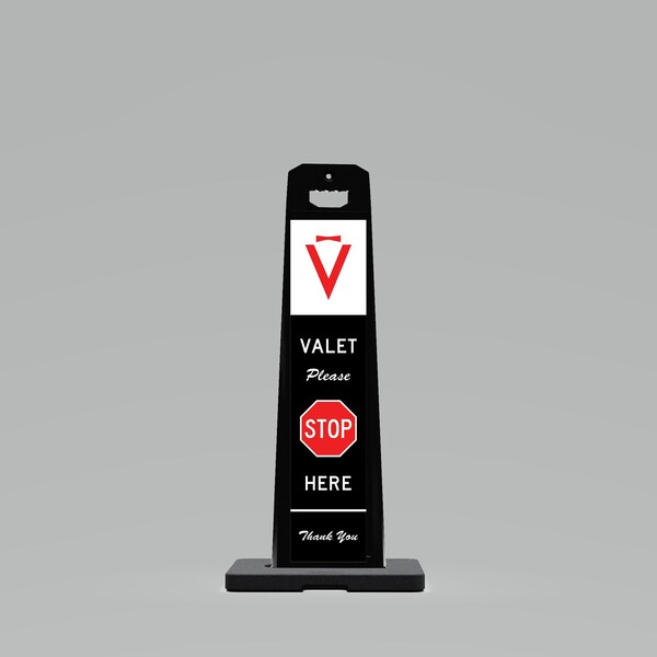 44-1/2'' x 17-1/2'' x 9'' Outdoor Standing Panel sign with 20lbs. weighted Base with VALET PLEASE STOP HERE on two sides Black Background.