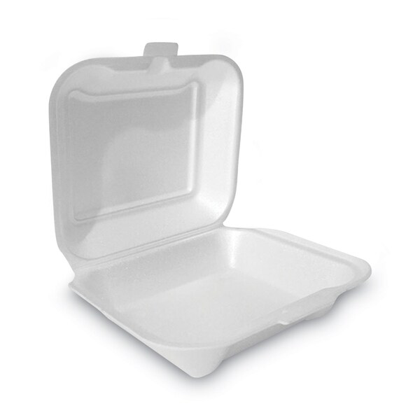 Foam Hinged Lid Container, Secure One Tab Latch, Poly Bag, 7.81 x 8.75 x 3.38, White, 200PK