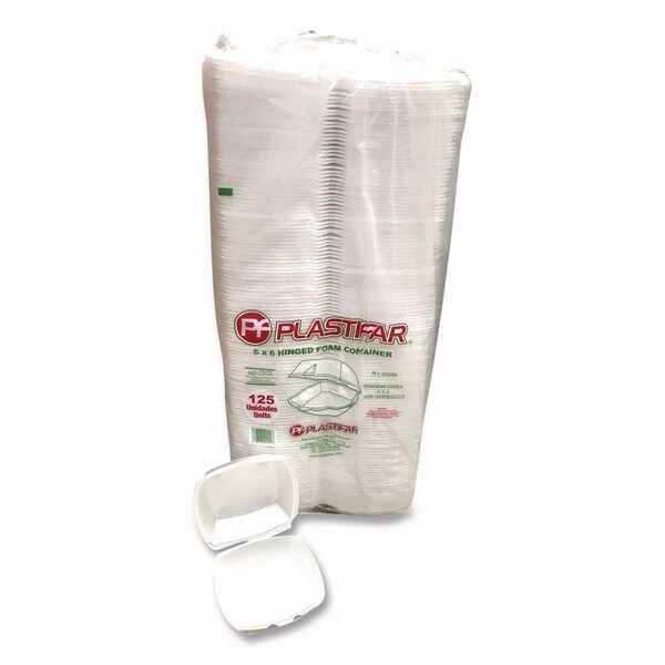 Foam Hinged Lid Containers, 6 x 6 x 3, White, Foam, 500PK