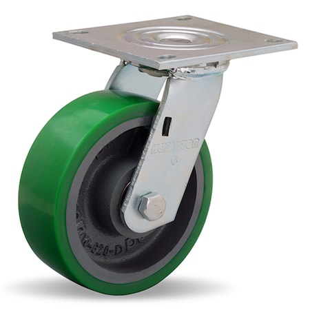 Heavy Service Dual-Wheel Swivel Caster, 5" x 2" Duralast Polyurethane (95A) on Cast Iron Wheels